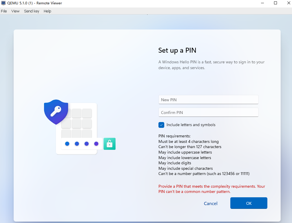 脚本中的第 9 行与第 10 行指定了 Windows 11 中网卡驱动类型为 e1000,并指定其采用 dhcp 方式获取 IP 地址。第 14 行则指定了 spice 协议连接地址,其中172.17.81.26:8891是指的我的宿主机的 IP 地址和端口号(此处 IP 地址以及端口号需要根据个人的宿主机环境进行修改),待执行 start.sh 脚本后可以通过 spice 协议连接 Windows 11 系统界面。