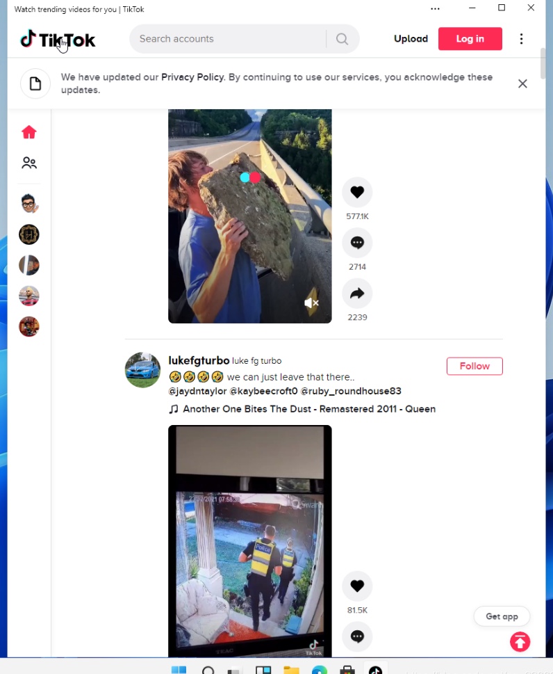 根据 tiktok 界面看,我觉得我这里安装的应该是 Mobile device 版本的 tiktok。这个界面是不是很类似手机和平板的 tiktok 界面风格呢?这应该是 Windows 11 的一个较为新颖的功能。