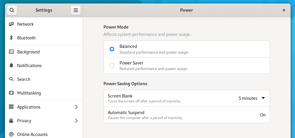 在 GNOME 41 中,现在有一个有效节省电力的性能调整。这对于笔记本用户手动调整其性能,或者当一个应用程序要求切换模式以节省电力时,是非常有用的。