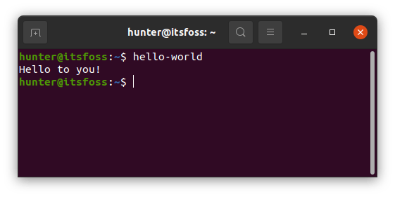 然后就完成了!用 makepkg -si 构建和安装软件包,然后在终端运行 hello-world,查看其输出。