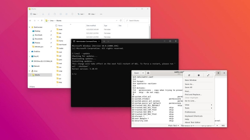 在 Windows 10 和 11 上,WSL 的部署过程已显著简化,可以通过 wsl --install 和 wsl --update 更快地安装和更新系统。而之前大约需要 3 到 4 个步骤才能启用 WSL。用户可以在 WSL 中安装图形应用程序,让它们与 Windows 应用程序一起运行,并且支持 GPU 加速的 3D 图形及音频。