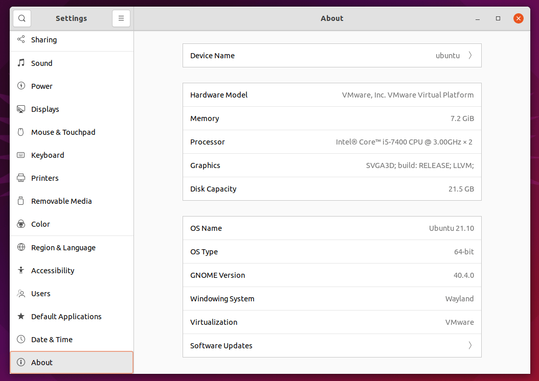 你可以选择全新安装或使用软件升级器 从 Ubuntu 21.04 升级 到 Ubuntu 21.10。