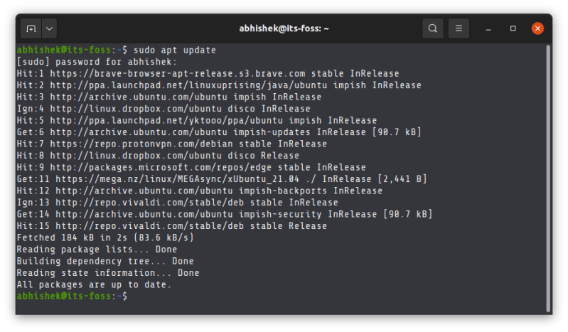 apt update 命令刷新了本地软件包的缓存。这对于一个新安装的 Ubuntu 来说是必不可少的。