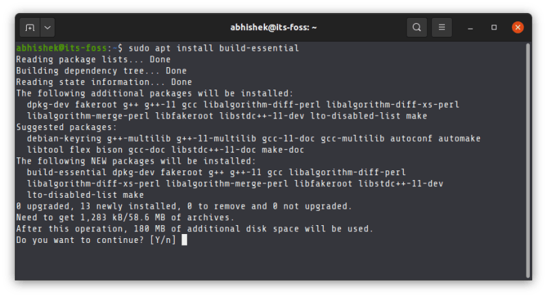 在 Ubuntu 中安装构建基础包(build-essential),只需要在终端中简单输入这个命令: