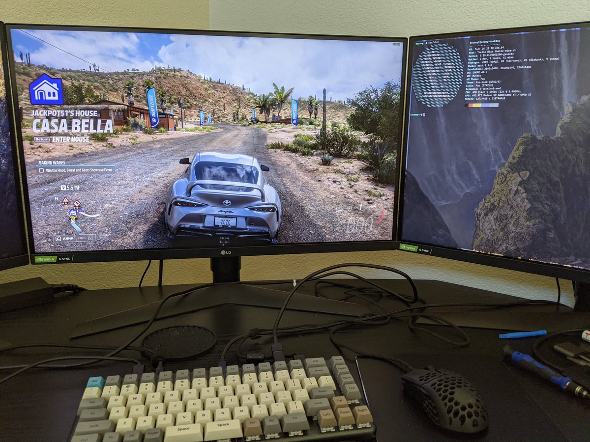 Jeremy Soller(System76 的工程师)分享了一条推特,可以看到他在 Pop!_OS 21.10 Beta 上玩《极限竞速:地平线 5》: