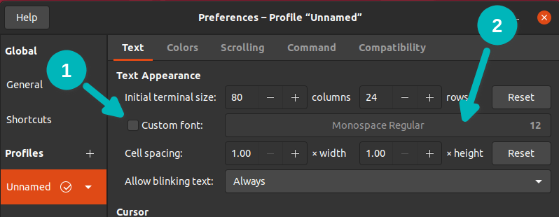 via: https://itsfoss.com/change-terminal-font-ubuntu/