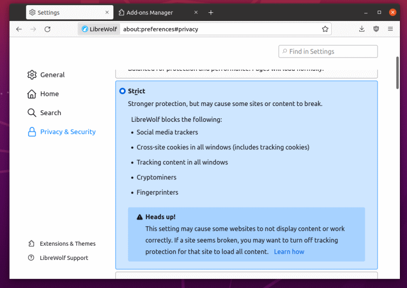 正如你所注意到的,LibreWolf 的目标是提供一个更清洁和有利于隐私的体验,而不需要调整任何东西。