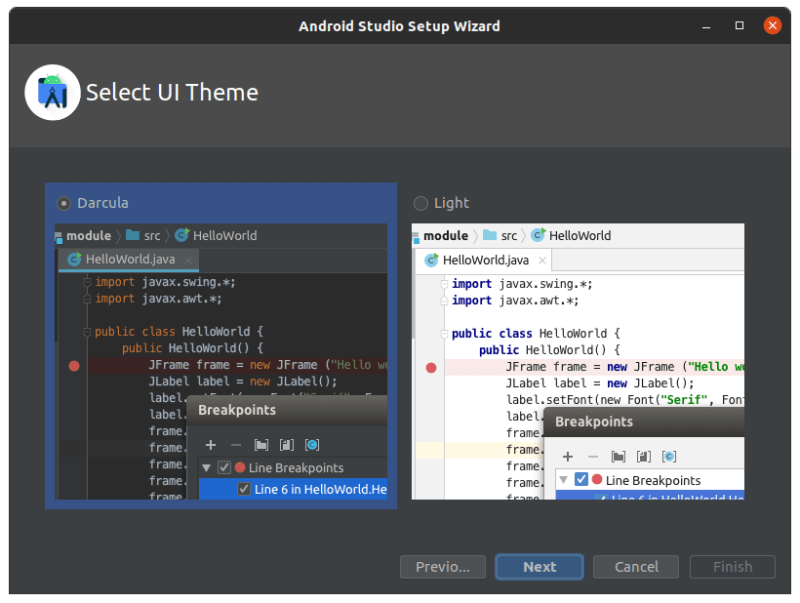 选择你喜欢的主题(我喜欢“ 暗色 Darcula ”的)。