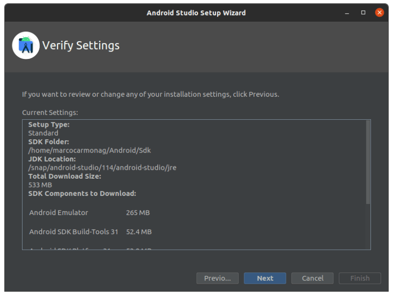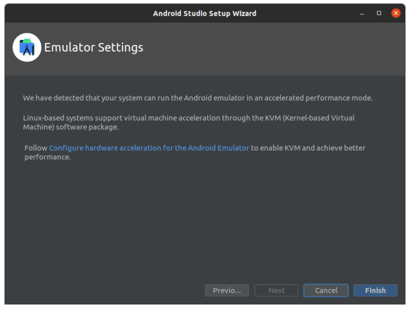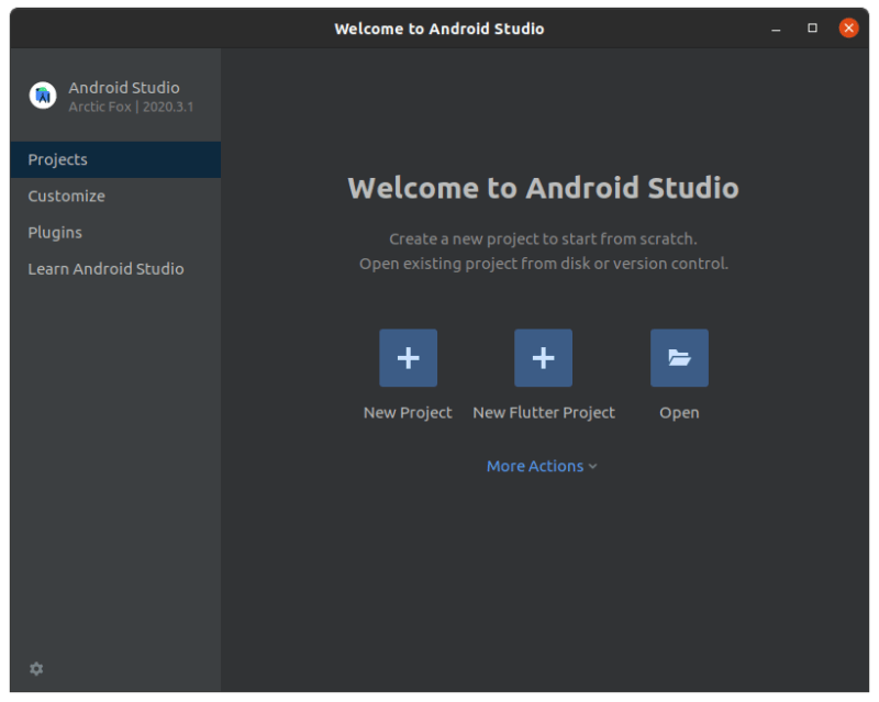 安装完毕后,从我们的操作系统菜单中打开 Android Studio。
