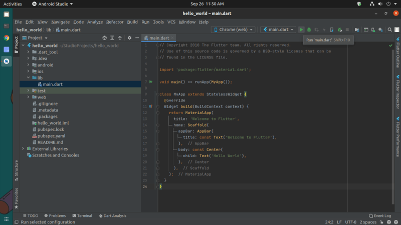你可以如此快速地创建一个 Flutter 项目,真是不可思议。跟你的 Hello World 项目打个招呼吧。