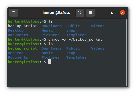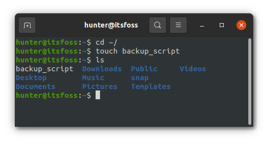 首先,我们在家目录(~)下创建该脚本,命令为 backup_script,如下图所示: