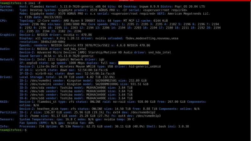 inxi 除了提供有关已安装的硬件和驱动的信息外,还可以用于资源监控。