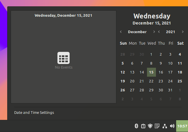 这一次,升级的重点是几个新功能。日历小程序增强了功能,当你点击系统时间/日期图标时,可以直接从系统托盘上显示事件。