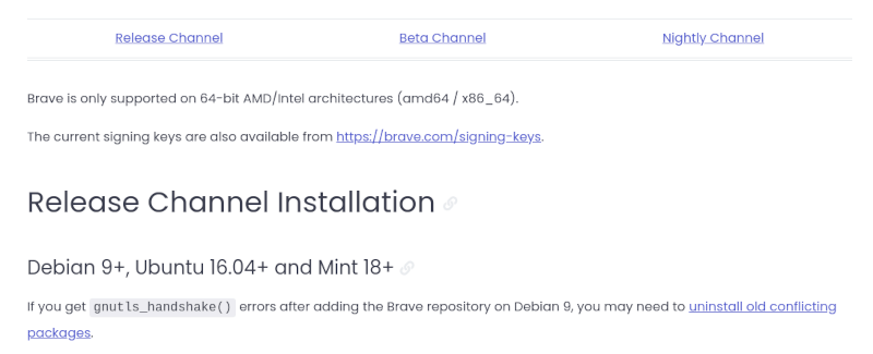 Brave 也支持相同的 Linux 发行版,但你必须使用终端,并按照下载页面中提到的命令进行安装。