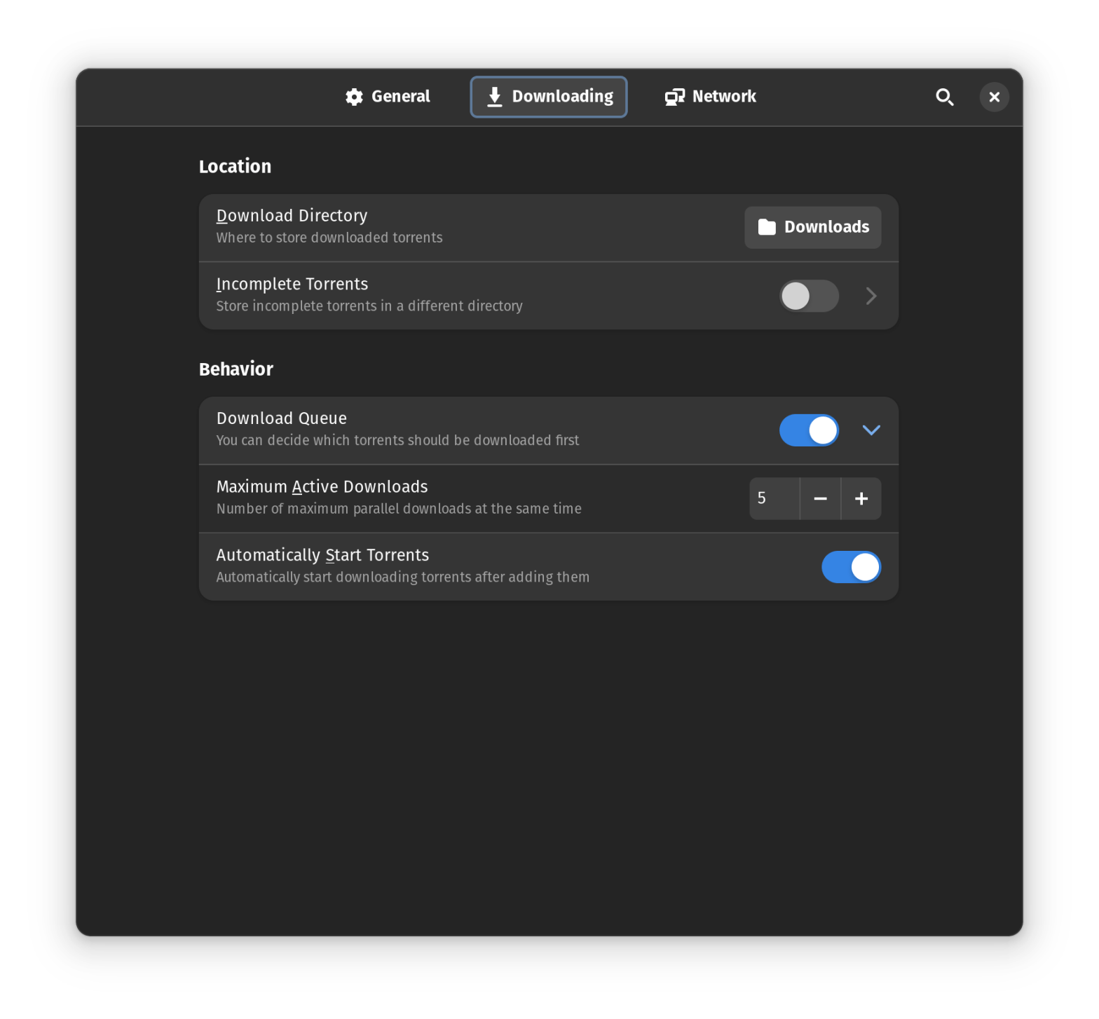 你可以得到一个外观简洁的 BitTorrent 应用程序,易于浏览,你也可以快速访问一些基本的选项。