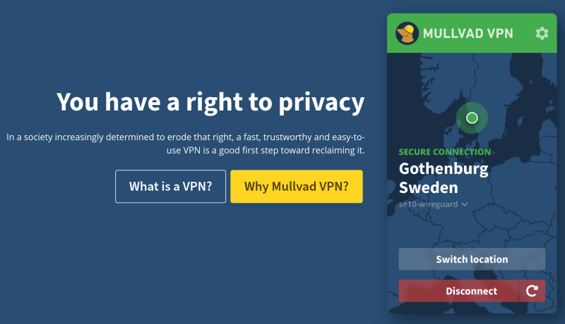 Mullvad 也提供了开源的客户端。有趣的是,它不需要你使用邮箱注册。