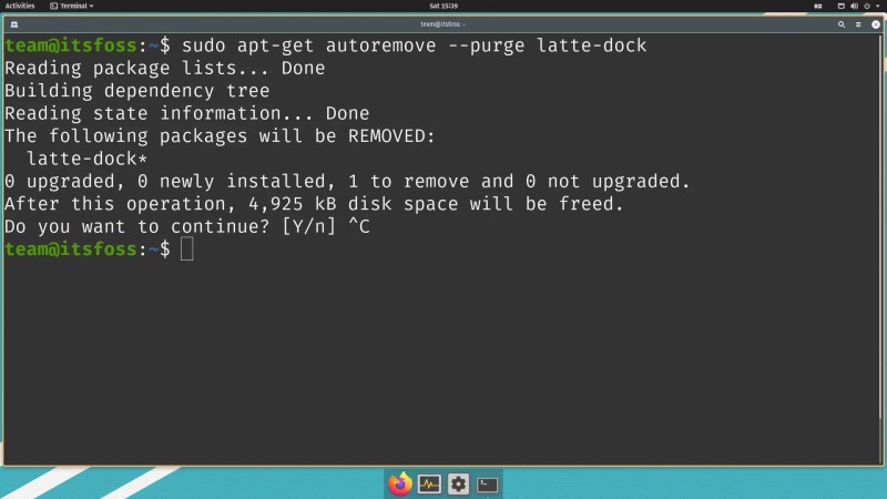 你可以使用 apt 软件包管理器删除 Latte Dock。用下面的命令来做: