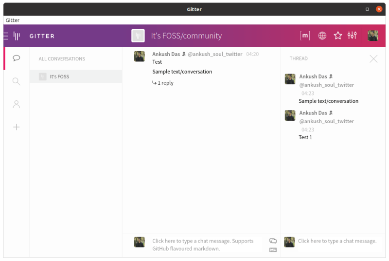 开发人员主要专注于网络应用。因此,如果你想避免在你的 Linux 桌面上安装任何东西,请前往 Gitter.im 并注册/登录以开始使用。