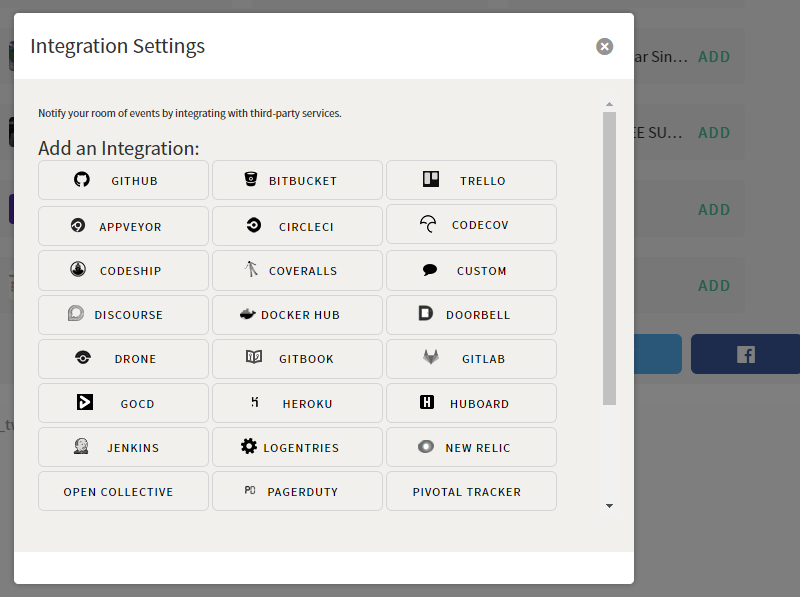 - 几个可用的集成(GitHub、Bitbucket、Trello、GitLab、Docker Hub、Discourse 等)。