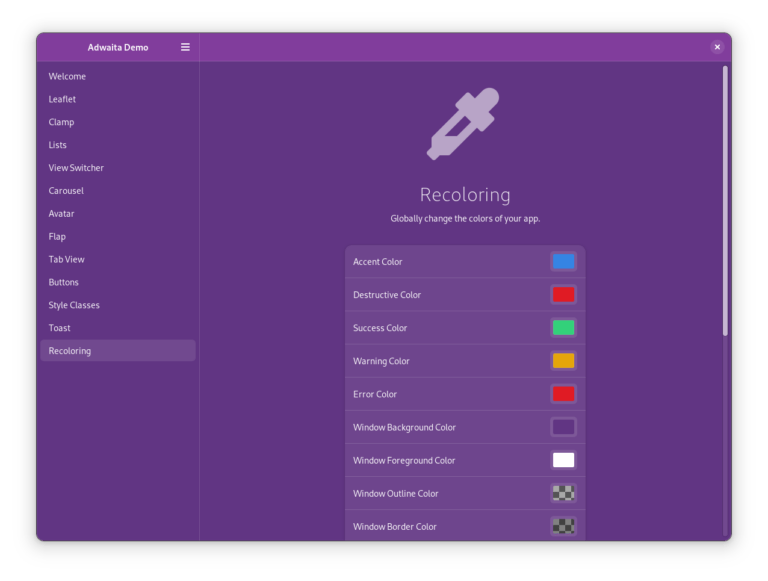 有了 libadwaita 1.0 中的 CSS,这在技术上已经可以实现。然而,API 可以帮助开发者更容易地使用这个功能。