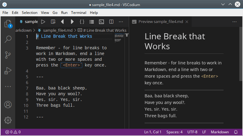 请记住,对于段落,必须用空行来分隔它们,这要通过按两次回车键来实现。Markdown 对此很严格。