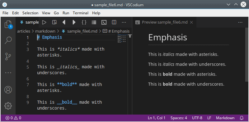 由于有 许多著名的编辑器 可以为你做这个转换,我在这里尽量避免使用命令行。不仅如此,许多这样的编辑器会让你写下你的文本,并同时向你展示网页的样子(称为渲染)。