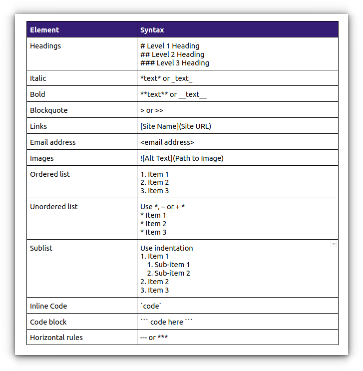 这是一个简短的 Markdown 语法列表为你作为参考,这个列表已经在本小结中介绍。