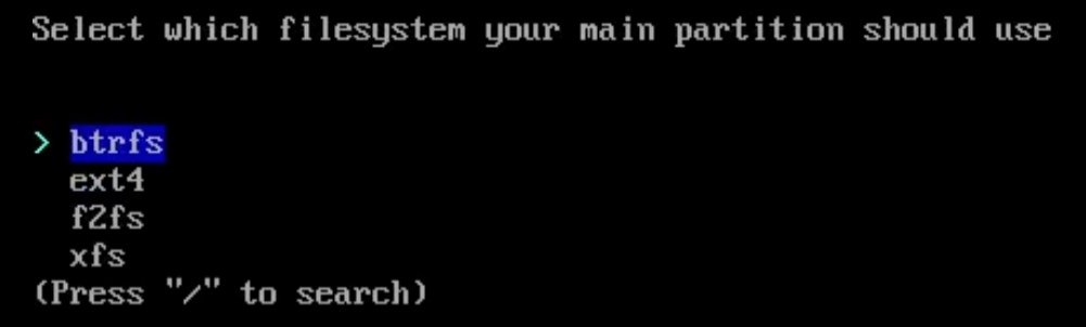 - 如果你选择 btrfs 作为文件系统,会添加一个 BTRFS 压缩选项。