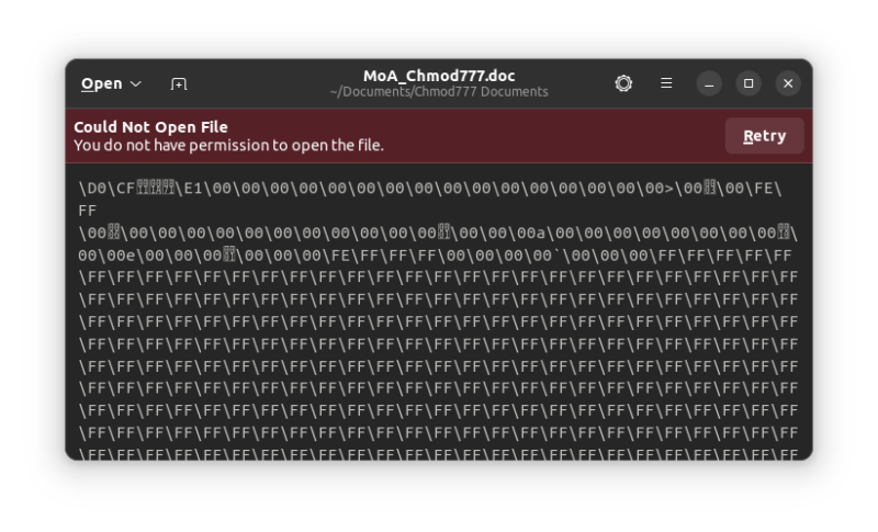 归根结底,GNOME 文本编辑器依旧是一个文本编辑器,无法也无意用来打开 doc 文件。如果你执意用它要打开 doc 文件,你看到的就只有一堆乱码。当然,pdf 文件也是如此。