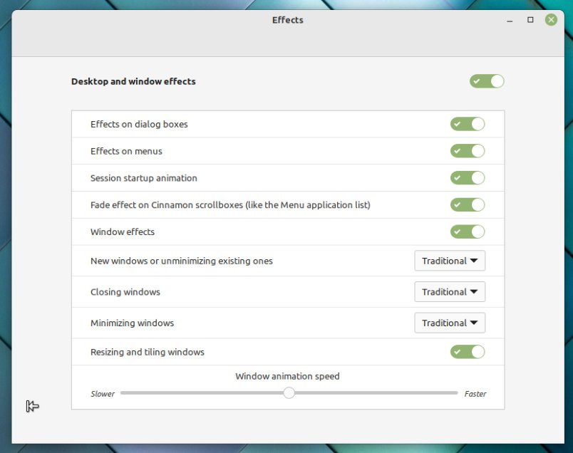 窗口和桌面动画效果有一些相当大的变化。首先,合并了窗口和桌面的效果设置。先前,是在不同的部分对动画进行细微的控制。