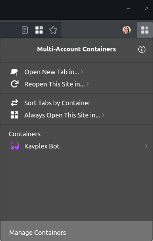 这是你将用于与 Firefox 多帐户容器交互的图标。如果你单击该图标,你将看到一个小菜单: