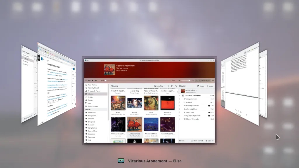 以及,任务切换效果 “ 覆盖 Cover ” 和“ 翻转 Flip> ” 使用了 Plasma 对话框作为背景。