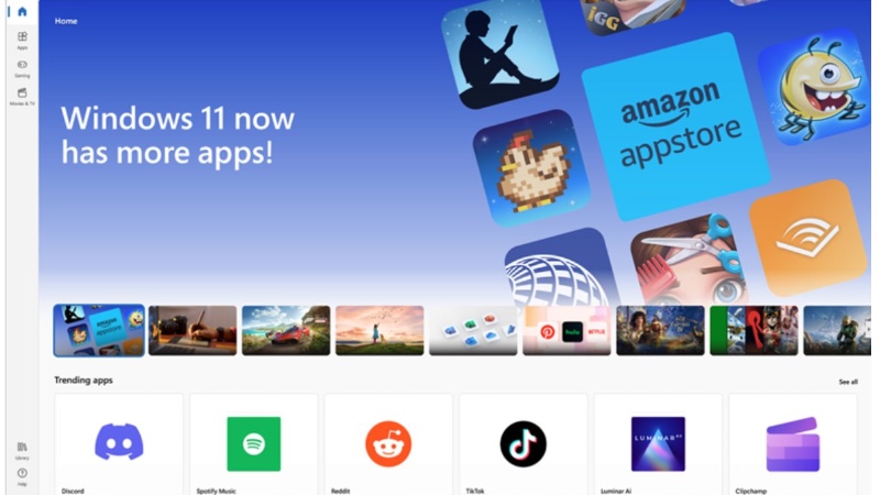 微软准备发布 Windows 的安卓子系统(WSA)的 1.0 版本,它可以运行安卓虚拟机,安卓应用就像 Windows 的应用一样运行。通过 WSA 可以运行 “50,000 个应用程序”,但是这些应用程序来自于亚马逊的应用商店,而不是谷歌的安卓商店。也就是说你找不到谷歌的安卓应用,微软的也找不到,Twitter、WhatsApp、Slack 等等都没有,只有各种游戏和一些看起来就山寨的应用。