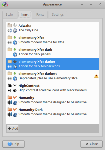 此外,elementary-xfce-darkest 主题图标包已被弃用。
