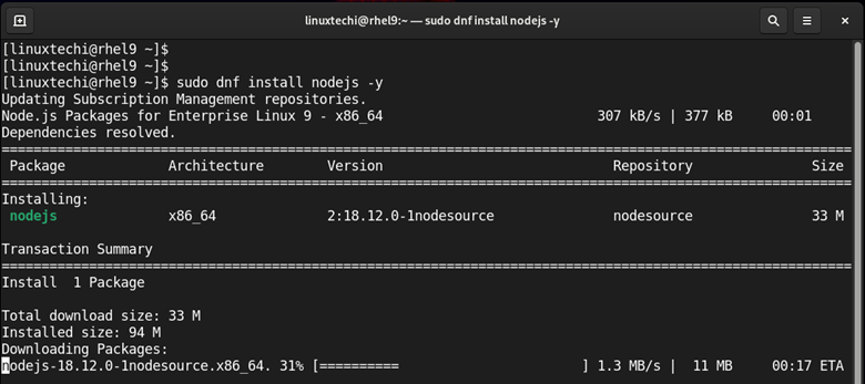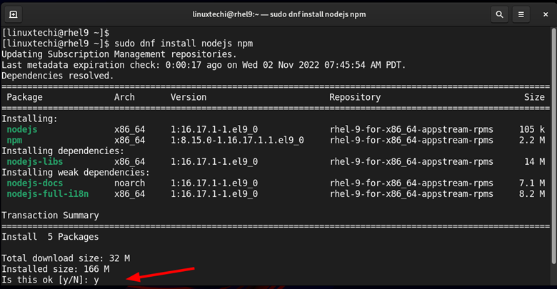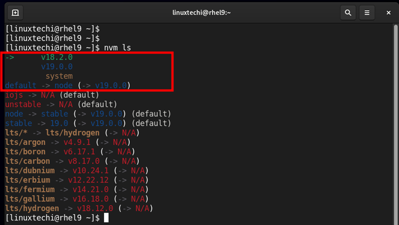 让我们看看如何使用这些方法在 RHEL 9 上安装 Node.js。