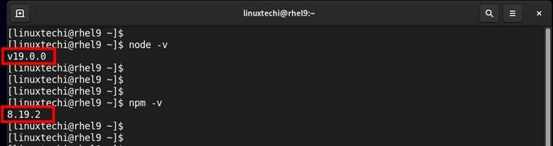 $ sudo dnf install nodejs npm -y