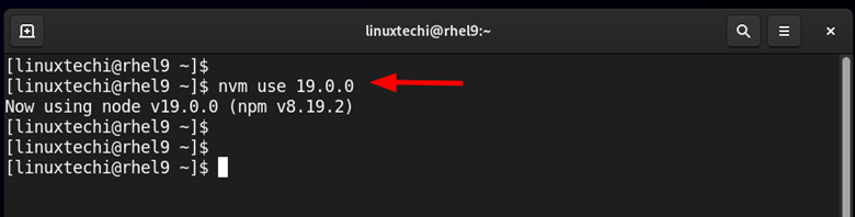 例如,要使用 Node 版本 19.0.0,请运行以下命令: