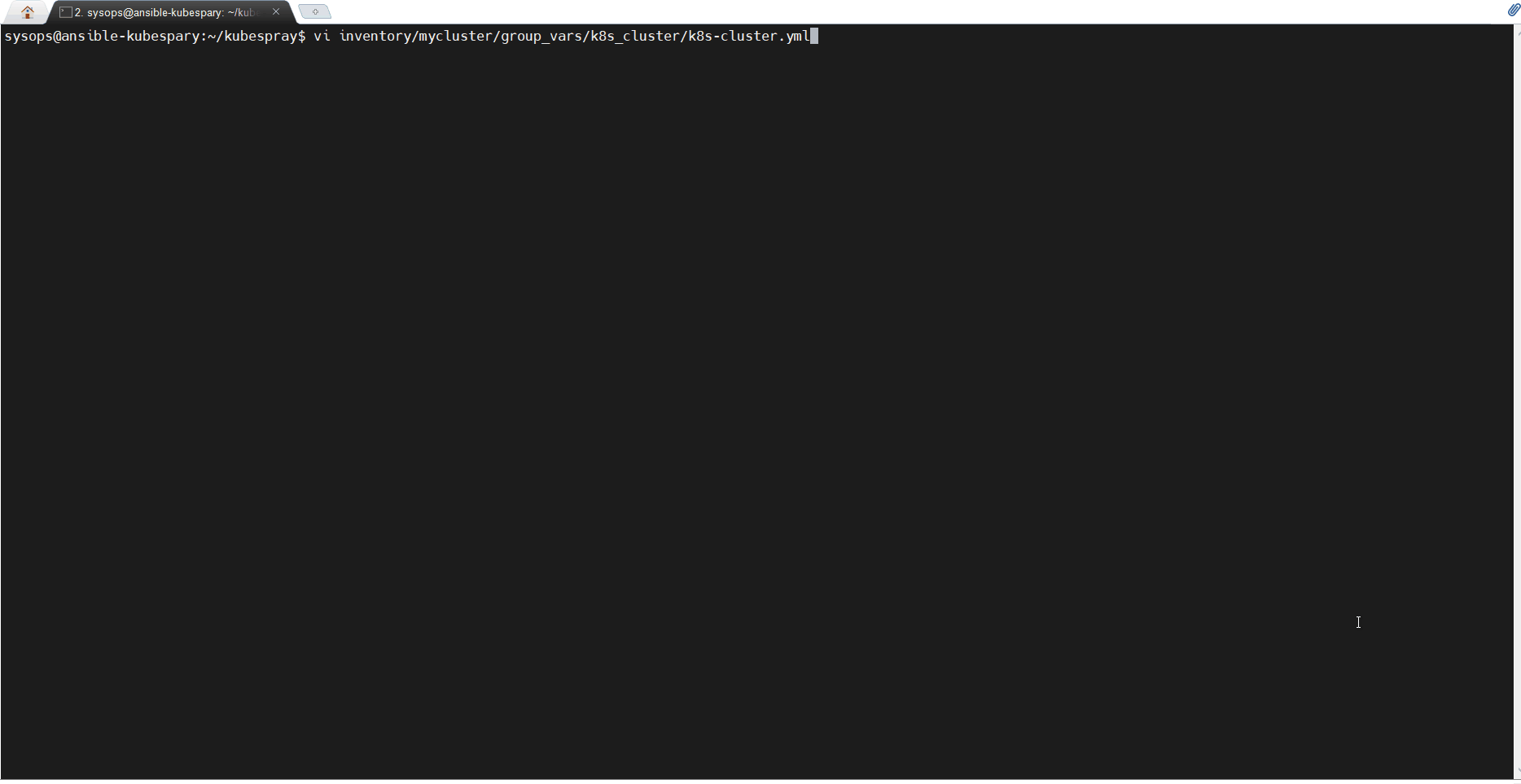 $ vi inventory/mycluster/hosts.yaml