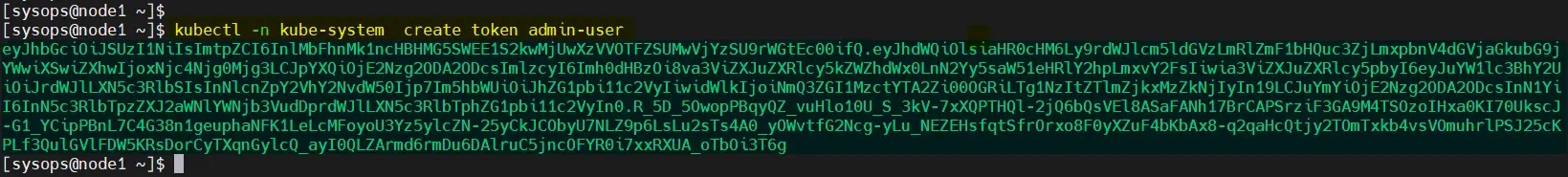 $ kubectl -n kube-system create token admin-user