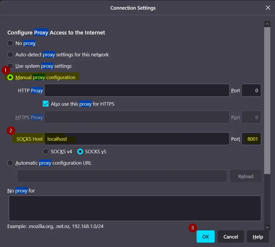 打开系统的网络浏览器,如下设置代理: