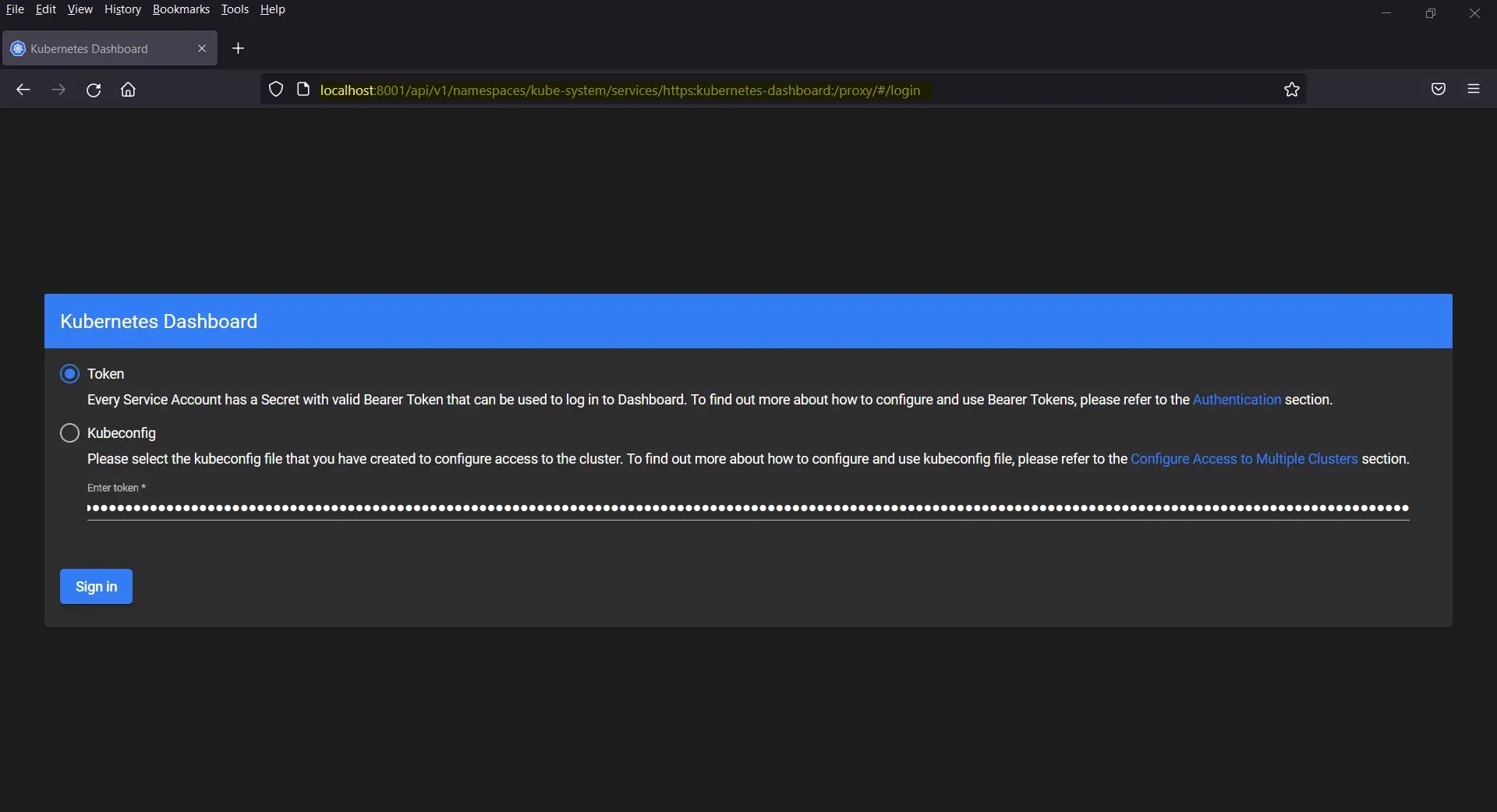 http://localhost:8001/api/v1/namespaces/kube-system/services/https:kubernetes-dashboard:/proxy/#/login