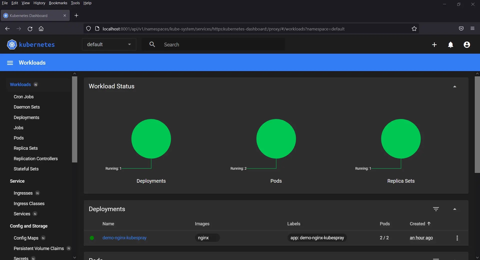 $ kubectl create deployment demo-nginx-kubespray --image=nginx --replicas=2