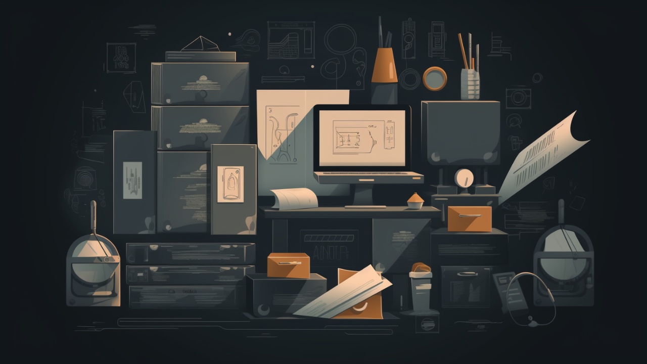 (题图:MJ:Office docs process dark plain background Illustration )