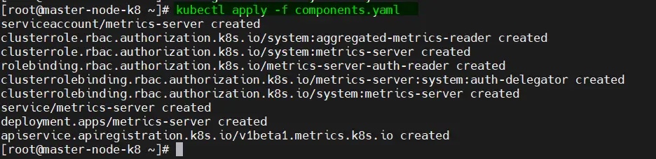 现在,我们准备好部署指标服务器,运行以下 kubectl 命令: