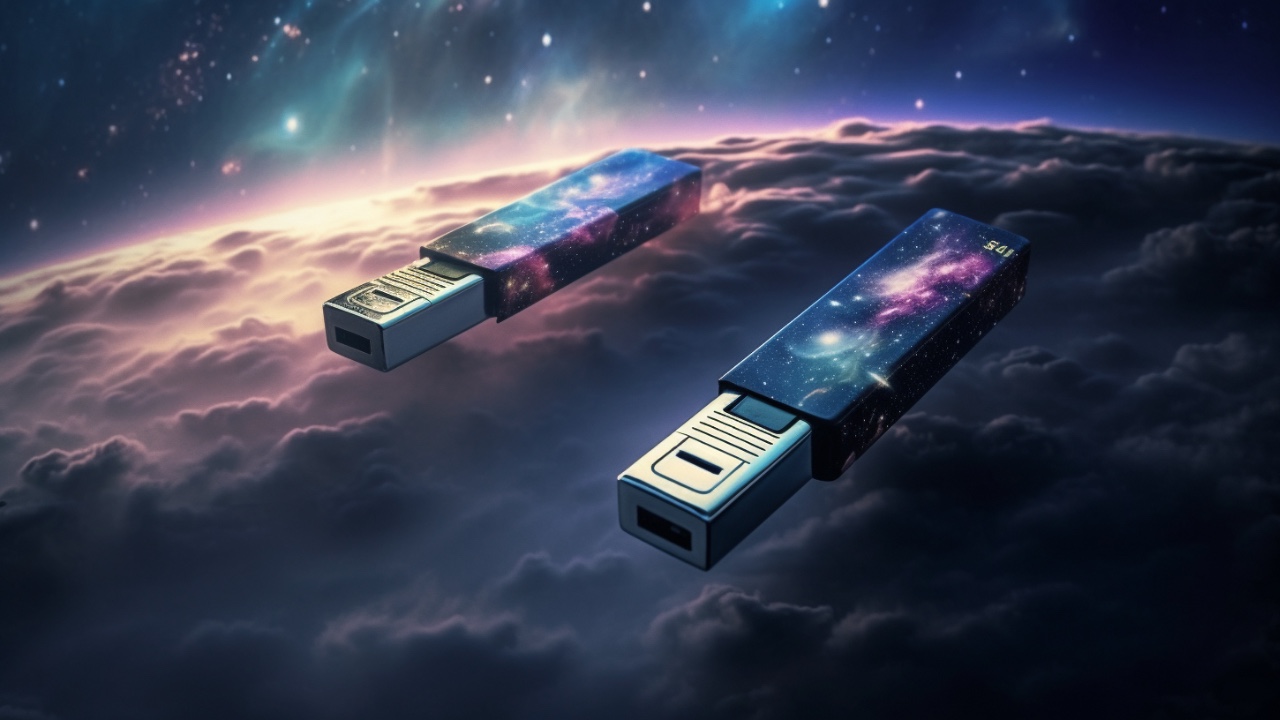 (题图: MJ: USB disk bootload computer sci-fi future in sky stars)
