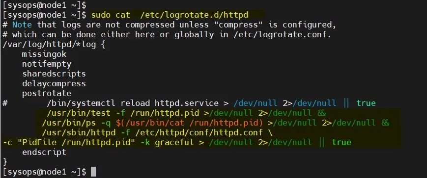 修改两个节点上的 /etc/logrotate.d/httpd: