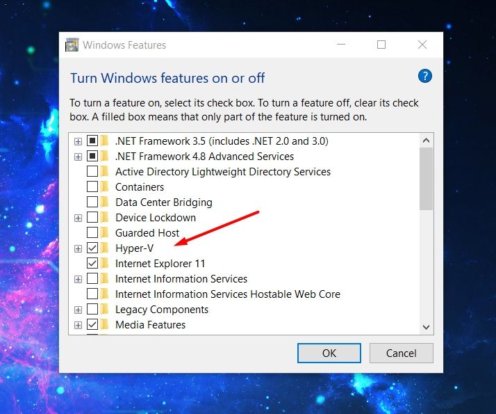 接下来,单击 “Hyper-V” 并点击 “OK”。就是这样。