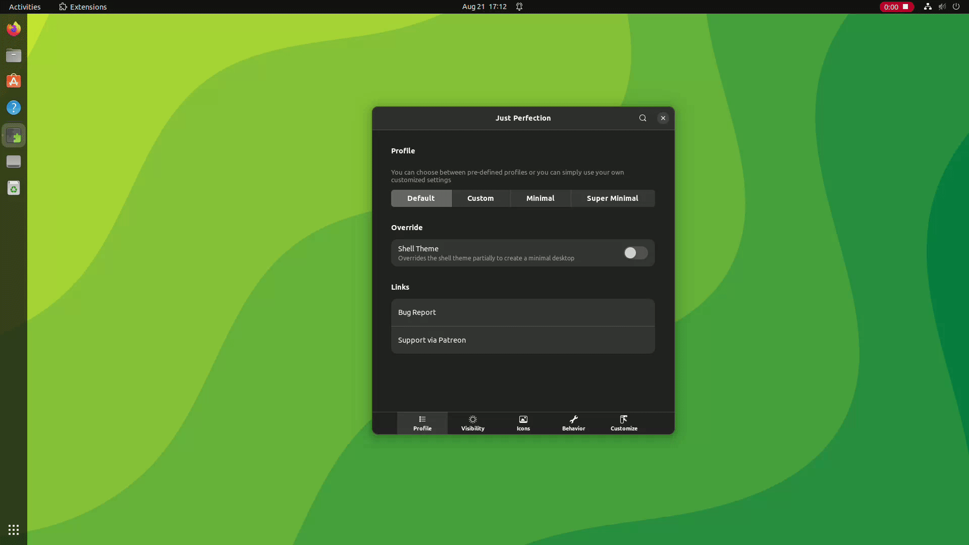 在此,我想向你推荐一款名叫 Just Perfection 的 GNOME 扩展,它帮助你一次性修改桌面的多种设置。
