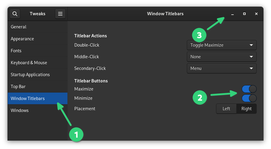 GNOME 优化 Tweaks 工具允许你自定义 GNOME 的各个方面。启用最小化窗口按钮就是其中之一。