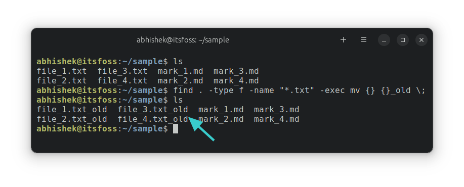 find . -type f -name "*.txt" -exec mv {} {}_old ;